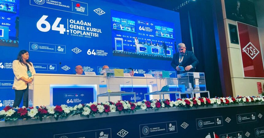 Türk Standartları Enstitüsü’nün 64. Olağan Genel Kurulu 12 Mayıs 2025 Pazartesi günü Sanayi ve Teknoloji Bakanı Mehmet Fatih Kacır’ın katılımları ile Ankara TSE Genel Kurul Salonu’nda gerçekleştirildi. TSE Başkanı Mahmut Sami Şahin’in başkanlığında gerçekleşen genel kurulda Kocaeli Ticaret Odası Başkanı Necmi Bulut, Türkiye Odalar ve Borsalar Birliği’ni temsilen TSE Yönetim Kurulu Başkan Yardımcılığı görevine seçildi. Genel kurulda yaptığı değerlendirmede görev için teşekkür eden Kocaeli Ticaret Odası Başkanı Necmi Bulut, “TSE, sadece standartların belirlenmesi değil; aynı zamanda kalite, güvenlik ve sürdürülebilir kalkınma açısından da ülkemizin geleceğine yön veren stratejik bir kurumdur. TSE Başkanımız Sayın Mahmut Sami Şahin’e ve TOBB Başkanımız Sayın Rifat Hisarcıklıoğlu’na vazife için teşekkür ediyor, Türk iş dünyası adına üstlendiğimiz sorumluluğu başarıyla ifa edebilmek için var gücümüzle çalışacağımızı özellikle vurgulamak istiyorum” dedi.