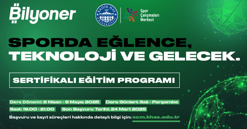 Bilyoner ve Kadir Has Üniversitesi Spor Çalışmaları Merkezi iş birliğiyle 2024/25 akademik yılında “Sporda Eğlence, Teknoloji ve Gelecek” sertifika programının ilki düzenleniyor. Dünyada ve Türkiye’de büyüyen spor endüstrisine odaklanan programın lansmanı, 22 Mart 2025 Cumartesi günü Kadir Has Üniversitesi Cibali Salonu’nda gerçekleştirilecek.