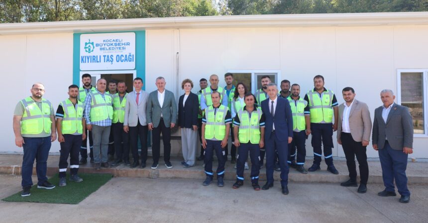 Başkan Büyükakın, Büyükşehir’in Körfez Kıyırlı’da dünya standartlarına uygun olarak inşa ettiği taş kırma ve eleme tesisinde incelemelerde bulundu