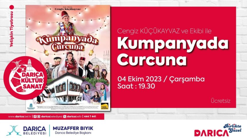 Darıca Belediyesi, yeni dönem kültür sanat sezonunu ünlü komedyen Cengiz Küçükayvaz programıyla açacak. 4 Ekim Çarşamba günü gerçekleştirilecek özel etkinlikte Cengiz Küçükayvaz’ın sahne alacağı ‘Kumpanyada Curcuna’ isimli gösterisi yer alacak. Darıca Belediyesi Adnan Menderes Kültür Merkezi’nde düzenlenecek etkinlik saat 19.30’da başlayacak. Gösteri öncesi saat 18.30’da kokteyl düzenlenecek ve kent protokolünün de katılacağı kokteyle vatandaşlar da davet edildi.