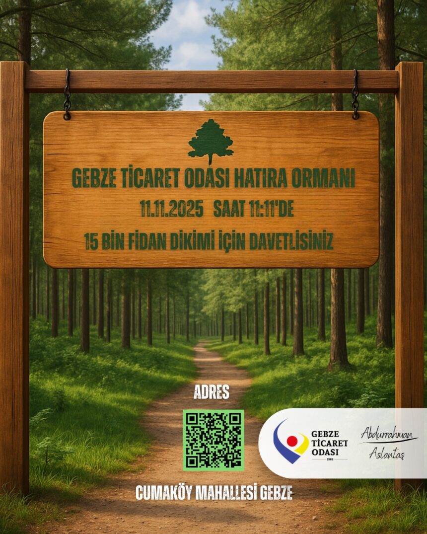 Bu anlamlı proje kapsamında oluşturulacak Gebze Ticaret Odası Hatıra Ormanı için tüm üyelerimizi ve bölge halkımızı, doğaya katkı sağlamak üzere düzenleyeceğimiz fidan dikim törenine davet ediyoruz.