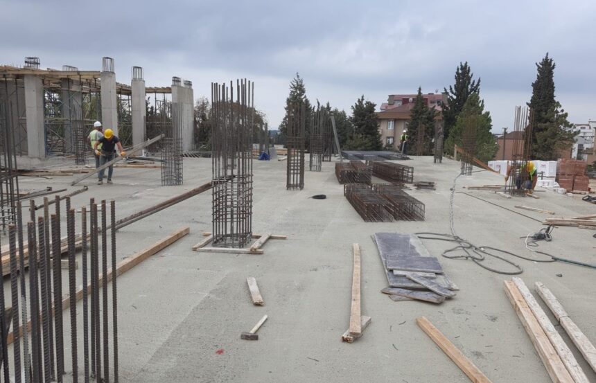 Yapı Kontrol Dairesi Başkanlığı’nın idaresinde hummalı bir çalışma yürüten yüklenici firma, yapının tüm bloklarında eş zamanlı olarak çalışıyor. Bu bağlamda ekipler, A blokta demir imalatına, zemin katta ise döşeme kalıp imalatına devam ediyor. B blokta betonarme imalatının tamamlandığı projede C bloğun zemin kat ve 1. kat döşeme betonu, D blok kısmında ise zemin döşeme betonu ile 1. kat döşeme betonu döküldü. D bloğun 2. kat döşeme kalıbı çakan ekipler aynı katta demir imalatına devam ediyor. F blokta ise zemin betonu, 1. katta ise döşeme betonu atıldı. 2. katta da döşeme kalıp imalatı devam ediyor. E, H ve F blokta ise betonarme imalatı önümüzdeki günlerde başlayacak.