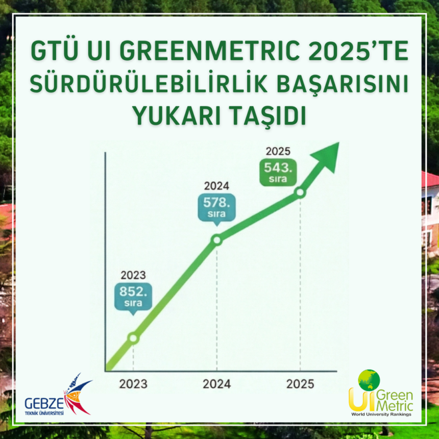 Gebze Teknik Üniversitesi (GTÜ), kampüs sürdürülebilirliği alanındaki uluslararası başarısını UI GreenMetric Dünya Üniversite Sıralamaları 2025 sonuçlarıyla tescilledi. GTÜ, çevresel performansını istikrarlı biçimde artırarak dünya listesinde 543. sırada yer aldı.