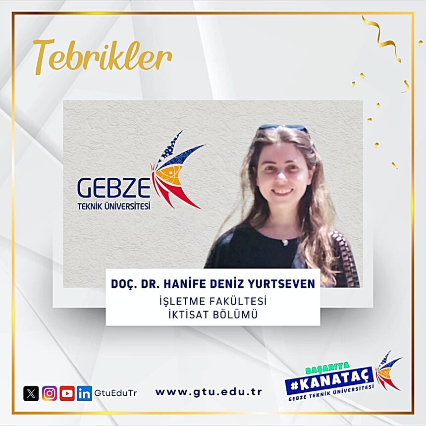 Gebze Teknik Üniversitesi (GTÜ) İşletme Fakültesi İktisat Bölümü Öğretim Üyesi Doç. Dr. Hanife Deniz Yurtseven, önemli bir uluslararası başarıya imza attı. Doç. Dr. Yurtseven, Orta Doğu, Türkiye ve Kuzey Afrika bölgelerinde yüksek nitelikli ekonomik araştırmaların geliştirilmesini hedefleyen saygın bölgesel ağlardan biri olan Economic Research Forum (ERF) tarafından Araştırma Üyesi (Research Fellow) olarak kabul edildi.