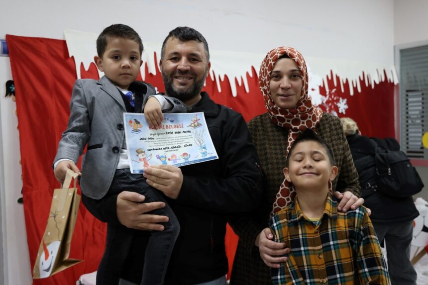 Kocaeli Büyükşehir Belediyesi Meslek ve Sanat Eğitim Kursları (KO-MEK), 2023 yılını yüz bin kursiyer hedefini aşarak dolu dolu geride bırakmanın mutluluğunu yaşadı. Kursiyerlerine özgün eğitimin yanı sıra ortaya koyduğu projelerle yenilikler yaşatan KO-MEK annesi kursa gelen 0-6 yaş çocuklarına da çocuk oyun odalarında eğitim vermeye devam ediyor. Özellikle kursiyer annelerin gözü arkada kalmasın diye KOMEK kurs merkezleri içinde oluşturulan Çocuk Oyun Odalarına gelen minikler ilk karne heyecanını yaşadı. İlk karnelerini eğitmenlerinin elinden alan minikler aileleri ile hazırlanan sınıflarda fotoğraf çektirerek bu anları ölümsüzleştirdi.
