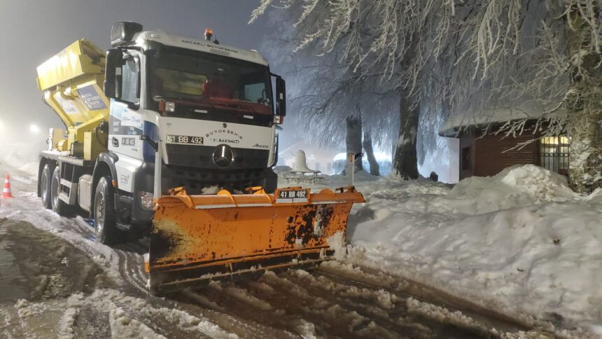 Kocaeli Büyükşehir Belediyesi, yılbaşı gecesi vatandaşların yüksek kesimlere sorunsuz bir şekilde ulaşabilmesi için tüm hazırlıkları tamamladı. Yeni yıl heyecanı yaşanırken Büyükşehir Belediyesi, 235 araç-iş makinesi ve 440 personelden oluşan karla mücadele ekiplerini seferber etti. Vatandaşların yeni yıla huzur ve güven içerisinde girebilmesi için gerekli tüm önlemleri alan Büyükşehir, ilçelerde, köy yollarında ve yüksek kesimlerde yol açma ve tuzlama çalışması için yoğun mesai harcıyor.