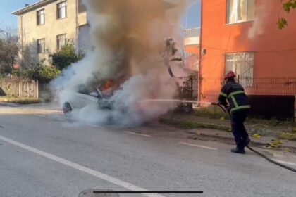 Kartepe’de park halindeki bir otomobil yandı. Çevredekilere korku dolu anlar yaşatan araç…