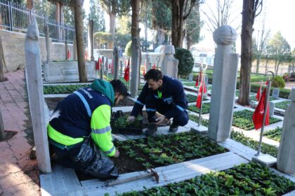 Şehit mezarları çiçeklerle donatıldı