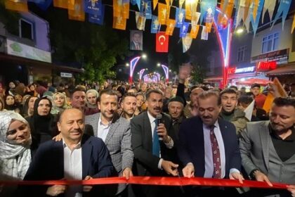 Alikahya’da seçim ofisinin açılışında meşale şov ve TOGG geçişine bir de coşkulu…