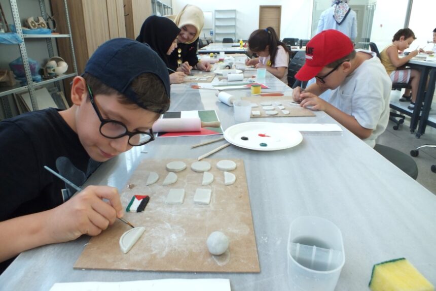 Büyükşehir’in seramik atölyesine katılan çocuklar Filistin bayrağından rozetler yaparak zulme karşı kardeşlerinin yanında olduklarını gösterdi