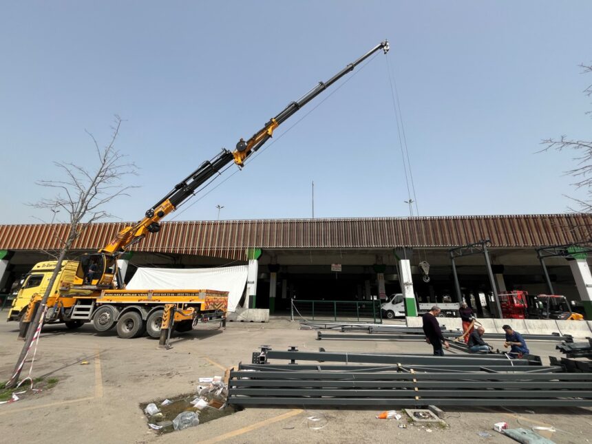 Kocaeli Büyükşehir Belediyesi, cumartesi ve perşembe günleri İzmit Doğu Kışla Parkı mevkiinde kurulan kapalı pazar alanında sundurma çalışması yapıyor. Yüklenici firmayla imzalanan sözleşmenin ardından hızlı hareket eden ekipler, yapılacak sundurmaların çelik montajına başladı. Proje kapsamında pazar alanında balıkçıların bulunduğu güney ve batı cephesi sundurma yapılarak kapatılacak. Projenin 100 takvim gününde bitirilmesi planlanıyor. Büyükşehir Belediyesi tarafından hazırlanan projeye göre 924 metrekarelik alan sundurma yapılarak kapatılacak.