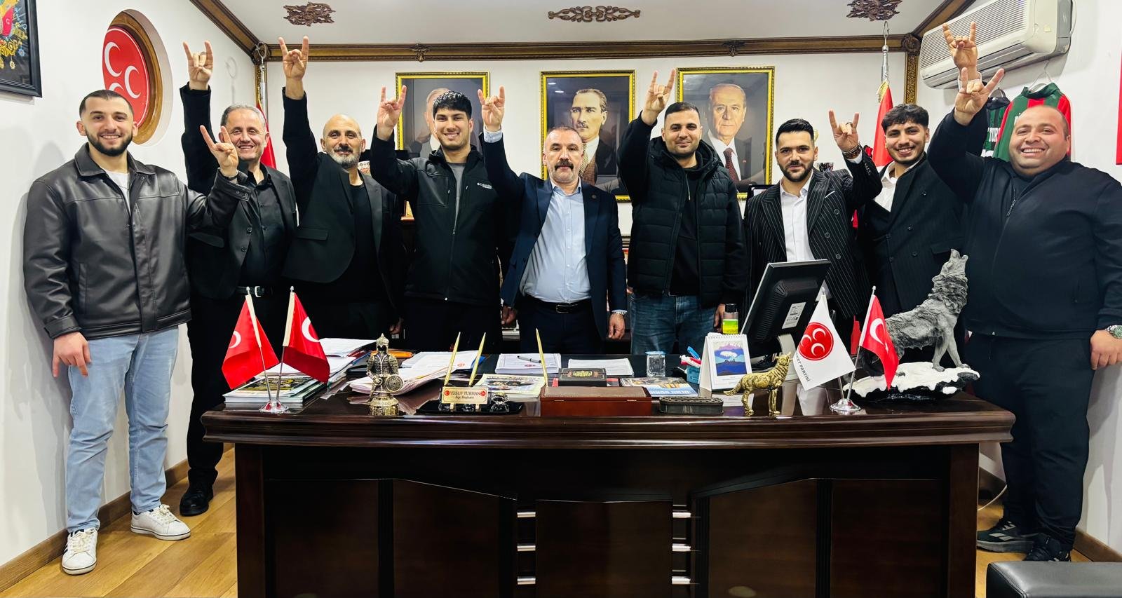 Söyleyişi sonrası Kocaeli Büyükşehir Belediyesi Gençlik ve Spor Hizmetleri Dairesi Başkanı Şemsettin Yıldırım ve Gençlik Eğitim Şube Müdürü Cumhur Kadıoğlu, gazeteci-yazar Erem Şentürk’e Kılavuz Gençlik Akademi Lise öğrencilerin tarafından sanat atölyelerinde hat sanatıyla hazırlanan tuğra motifli tablo takdim ederek hatıra fotoğrafı çektirdi.