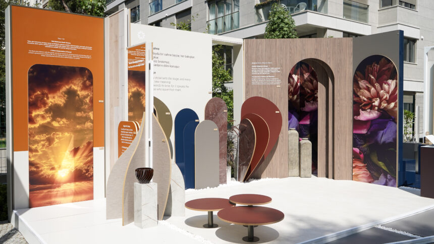 Yıldız Entegre, Glam & Calm Koleksiyonu’nda yer alan zarif ve dingin tonlara sahip yeni renk ve desenleri, görsel, işitsel ve duyusal öğelerle bütünsel bir deneyim alanı olarak kurguladı. Katılımcıların yüzeylerle tanışmasını aynı zamanda içsel bir yolculuğa dönüştüren bu anlatı, gün doğumuyla sakince aydınlanan ve gün batımıyla ışıltılı yansımalara bürünen bir hikâyeyi, oluşturulan atmosfer aracılığıyla çok duyulu bir deneyime taşıdı. Glam & Calm Koleksiyonu deneyim kartelası ise renk ve desenleri odağına alırken, şiirsel metinler, yapay zekâ desteği ile üretilen illüstrasyonlar ve tamamlayıcı gerçek kesitli fotoğraflarla üretildi. Kullanıcıları hazırlanan özgün çalma listeleriyle cazibe ve sakinlik arasında bir yolculuğa çıkaran kartela, mimar ve tasarımcılara ilham verirken, hayatın her anına dokunan ürünlerini sofistike bir dille sunuyor.
