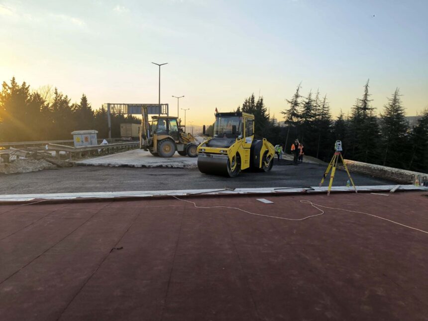 Köseköy Koridoru Alikahya Stadyum bağlantı yolu çalışmaları kapsamında TEM Otoyolu İstanbul istikametinde asfalt imalatları yapıldı