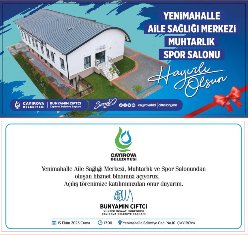 Çayırova Belediye Başkanı Bünyamin Çifçti’nin ilçeye kazandırdığı, Yenimahalle Aile Sağlığı Merkezi, Muhtarlık Ofisi ve Spor Salonu, yarın (13 Ekim Cuma) açılıyor.